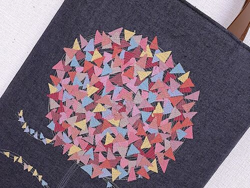 昨日のブログに載せたバッグのパッチワークの残り布が 色が揃っていてかわいいので、なにかに使いたくて なんとなく小さな三角に切って丸く並べていったら 途中で「あ、これはギガンジウムだ!」と気がつきました。 で、そこからはギガンジウムになるように…