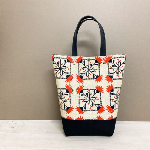 今日作ったバッグ。 赤と黒の組み合わせの花柄はフォークロアっぽくて好きです。 この柄はずいぶん前にシルクスクリーンの講座を受けたときに オリジナルの図案として作りました。 実際にシルクスクリーンでも布に刷ってバッグを作って 「なんちゃってルーマ…